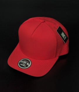 Gorra estilo snapback con malla transpirable y ajuste de broche plástico, ideal bordado y dtf con visera semi curva.